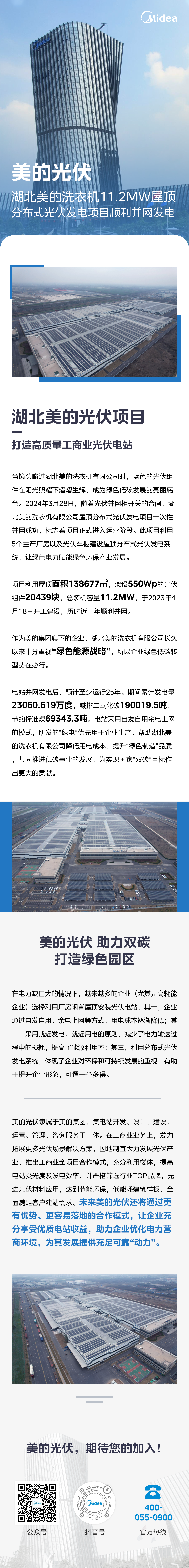 美的光伏 | 湖北美的洗衣機(jī)11.2MW屋頂分布式光伏發(fā)電項(xiàng)目順利并網(wǎng)發(fā)電